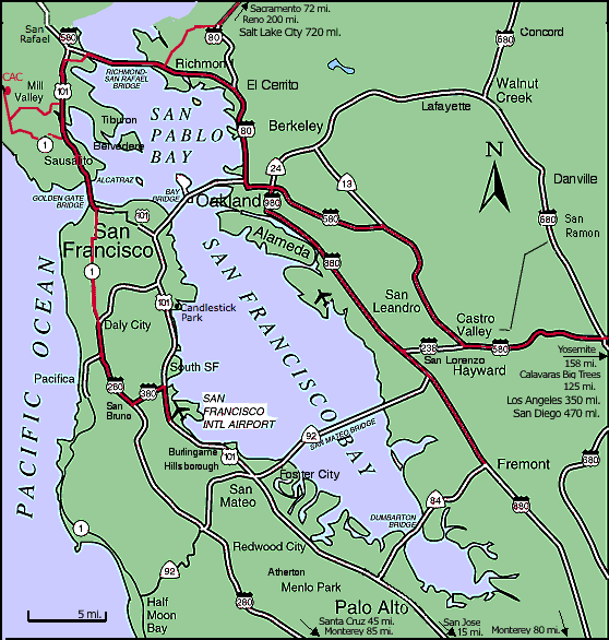 | 2 | Merge with I-80 east near the San Franisco Bay Bridge | 5.2 mi. |