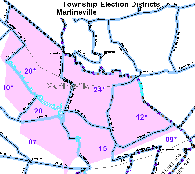 Martinsville includes Bridgewater Township Election Districts 7, 12, 15, 20, 24 and parts of 9 and 10.