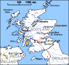 Glasgow to Arran 47 mi. 1:45 (incl Ferry)