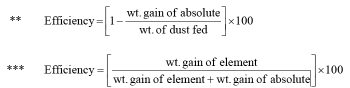 Initial efficiency indicates a clean filter, and cumulative efficiency indicates a filter at the end of the dust test cycle.