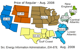 2. The Difference is shown following the / for 2008 prices. e.g. $4.49 / 50¢ means that price is 50¢ higher than the lowest price. The 2008 survey was taken when prices were dropping, so some of the differences may have been a result of timing, one station dropped their price before another.