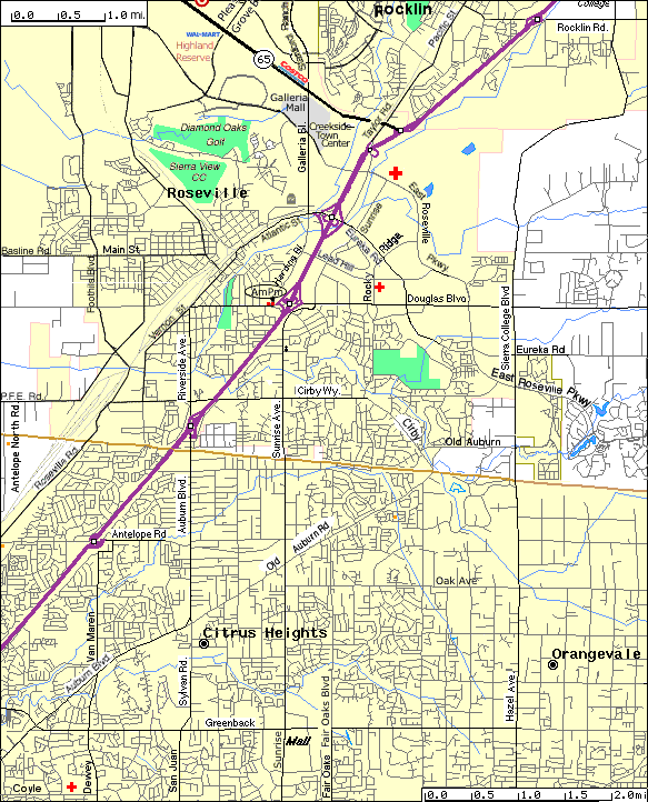 | Atlantic St. Eureka Rd. | Cemetery, Galleria Shopping see (see Hwy 65 below) | Hospital, Gas, Mini-Mart, Lodging, Restaurant, Fast Food Wireless AP - Saturn 750 Automall Drive, Roseville (Wi-Fi Alliance) | |
