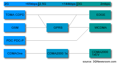 | UMTS(Universal Mobile Telecommunications System) | CDMA | 3G | 1.9 Mbps |